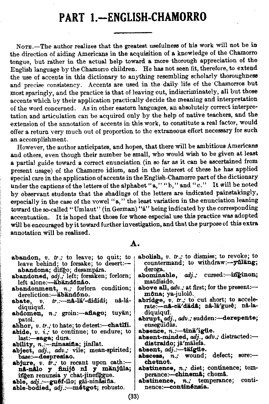 | Part I.--English-Chamorro | . . . . . . . . . . . | 33 | 33 |