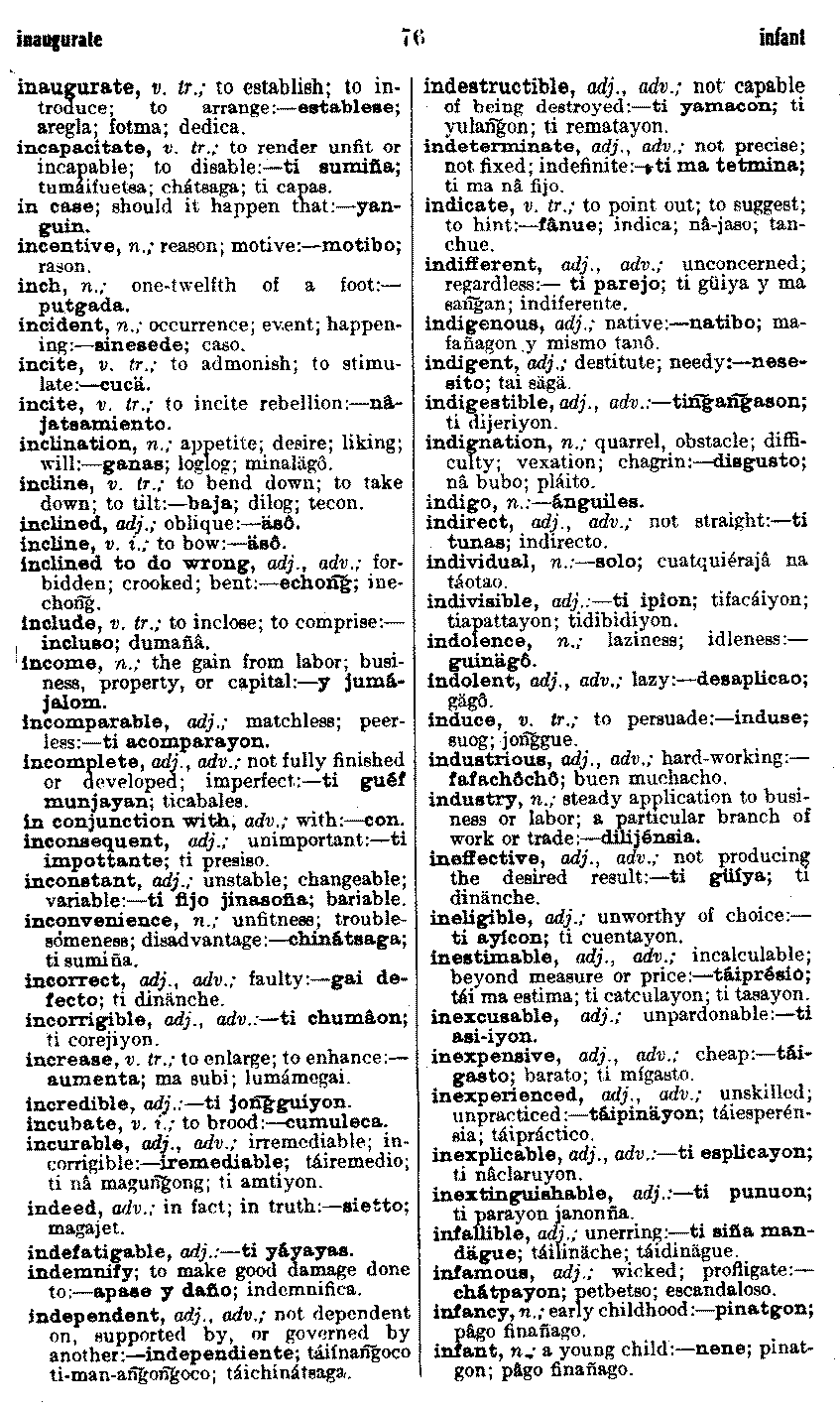 | inaugurate - infant | . . . . . . . . . . . | 76 | 76 |