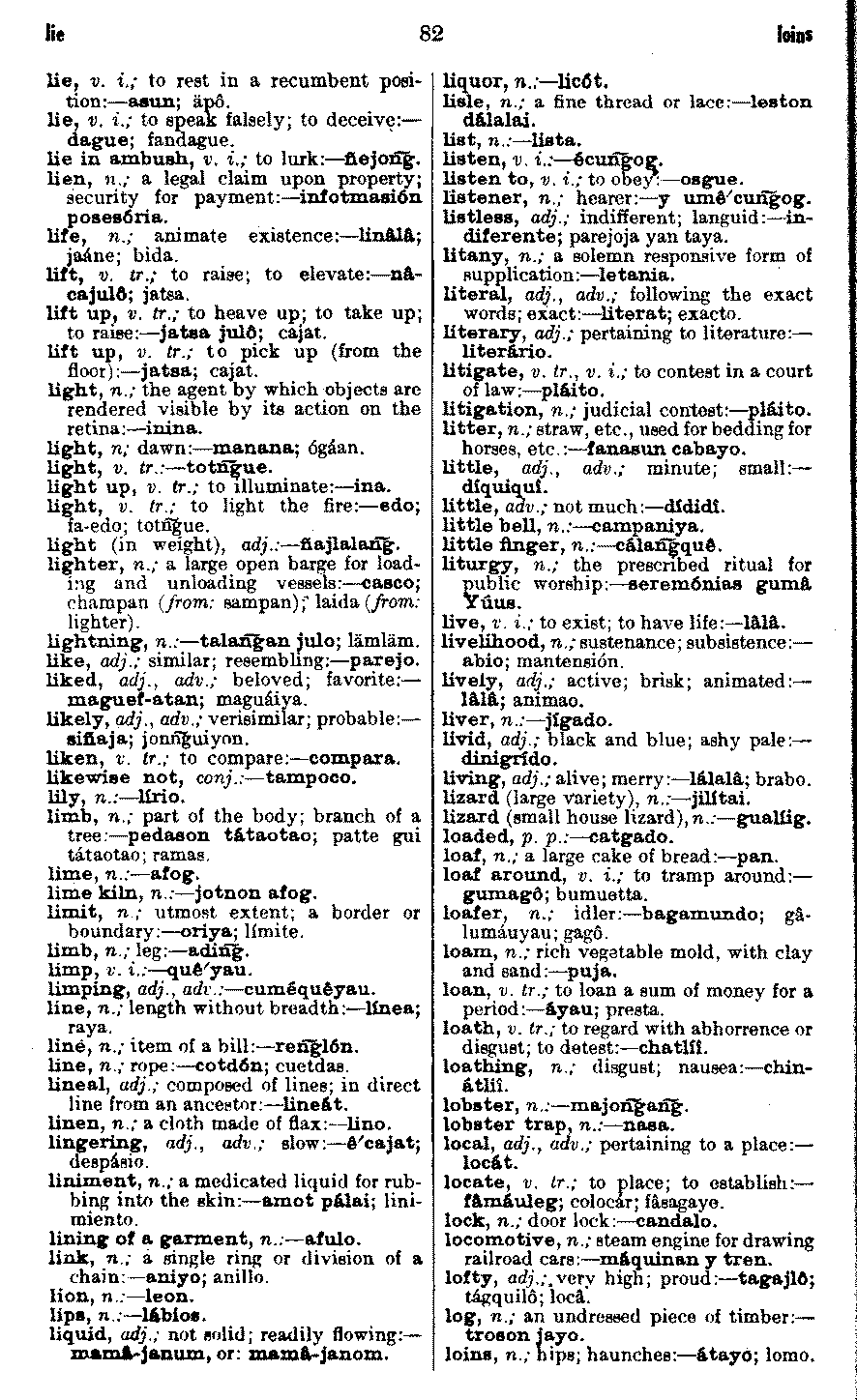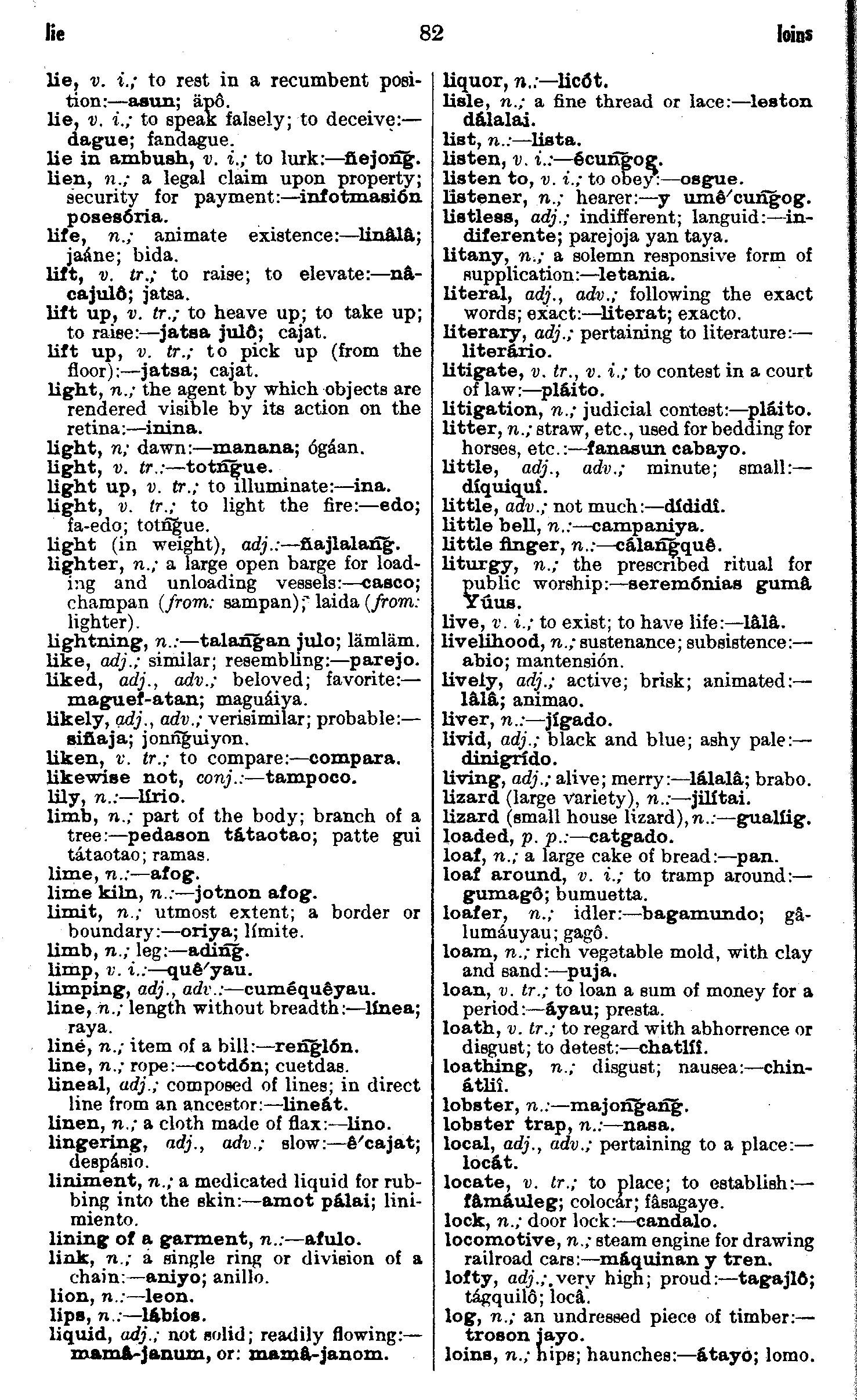| lie - loins | . . . . . . . . . . . | 82 | 82 |