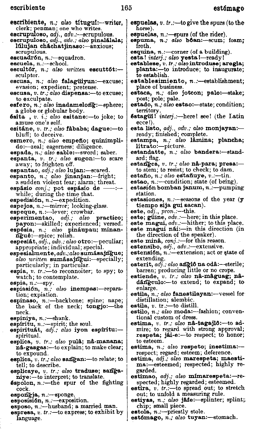 | escribiente - estómago | . . . . . . . . . . . | 165 | 165 |