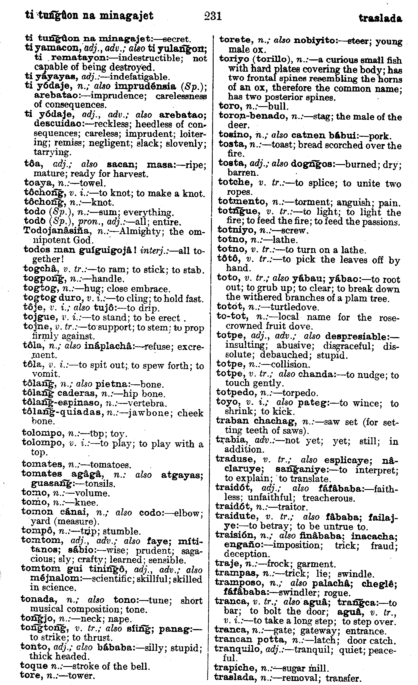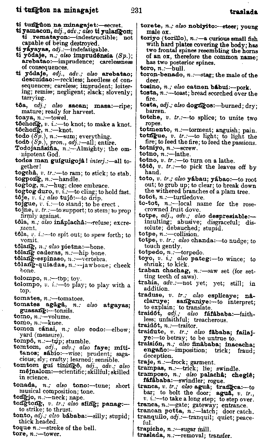 | ti tuñgûon na minagajet - traslada | . . . . . . . . . . . | 231 | 231 |
