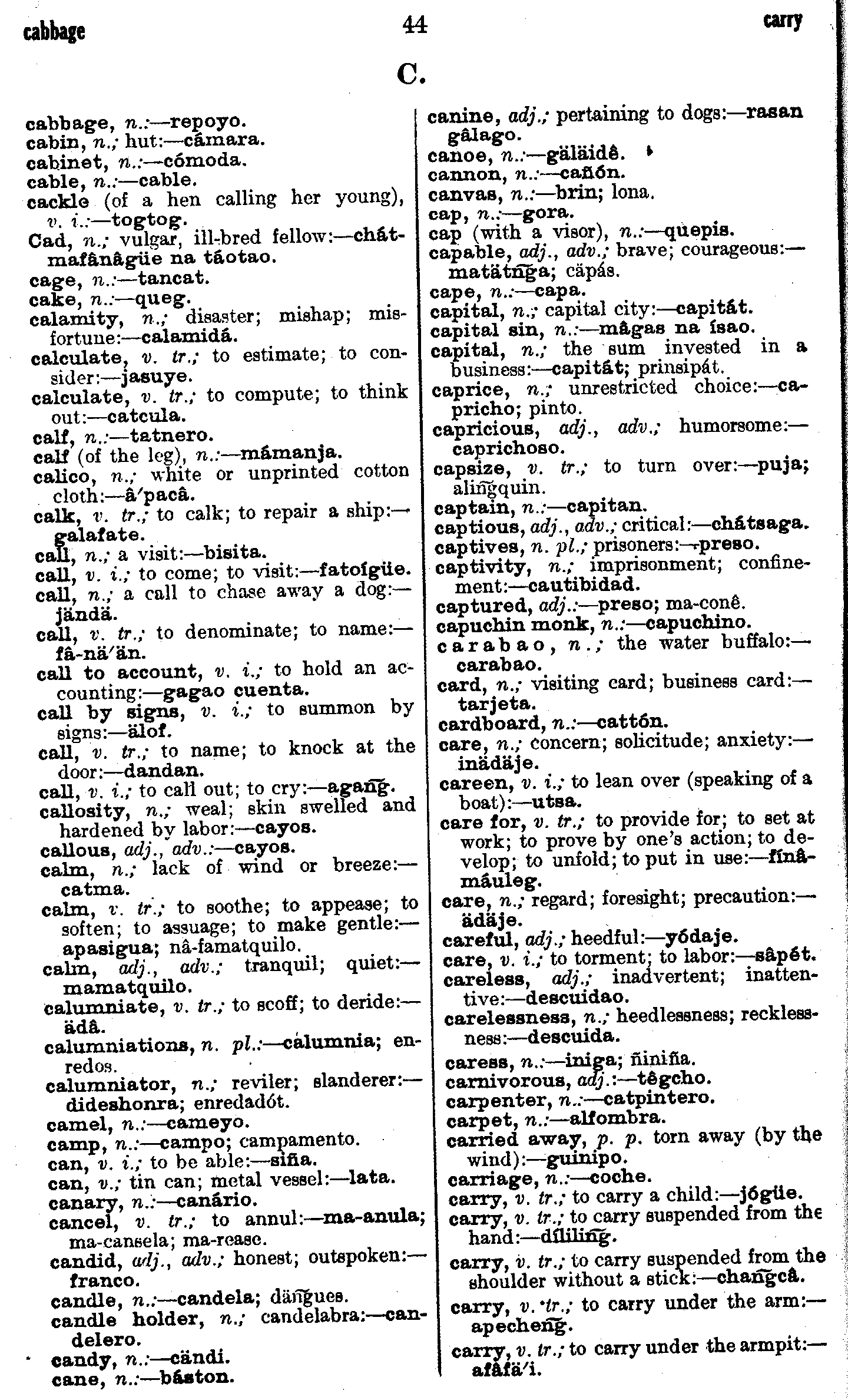 | cabbage - carry | . . . . . . . . . . . | 44 | 44 |