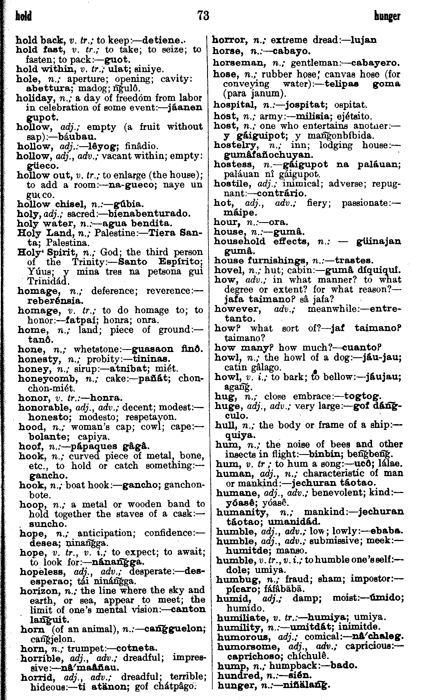 | hold - hunger | . . . . . . . . . . . | 73 | 73 |