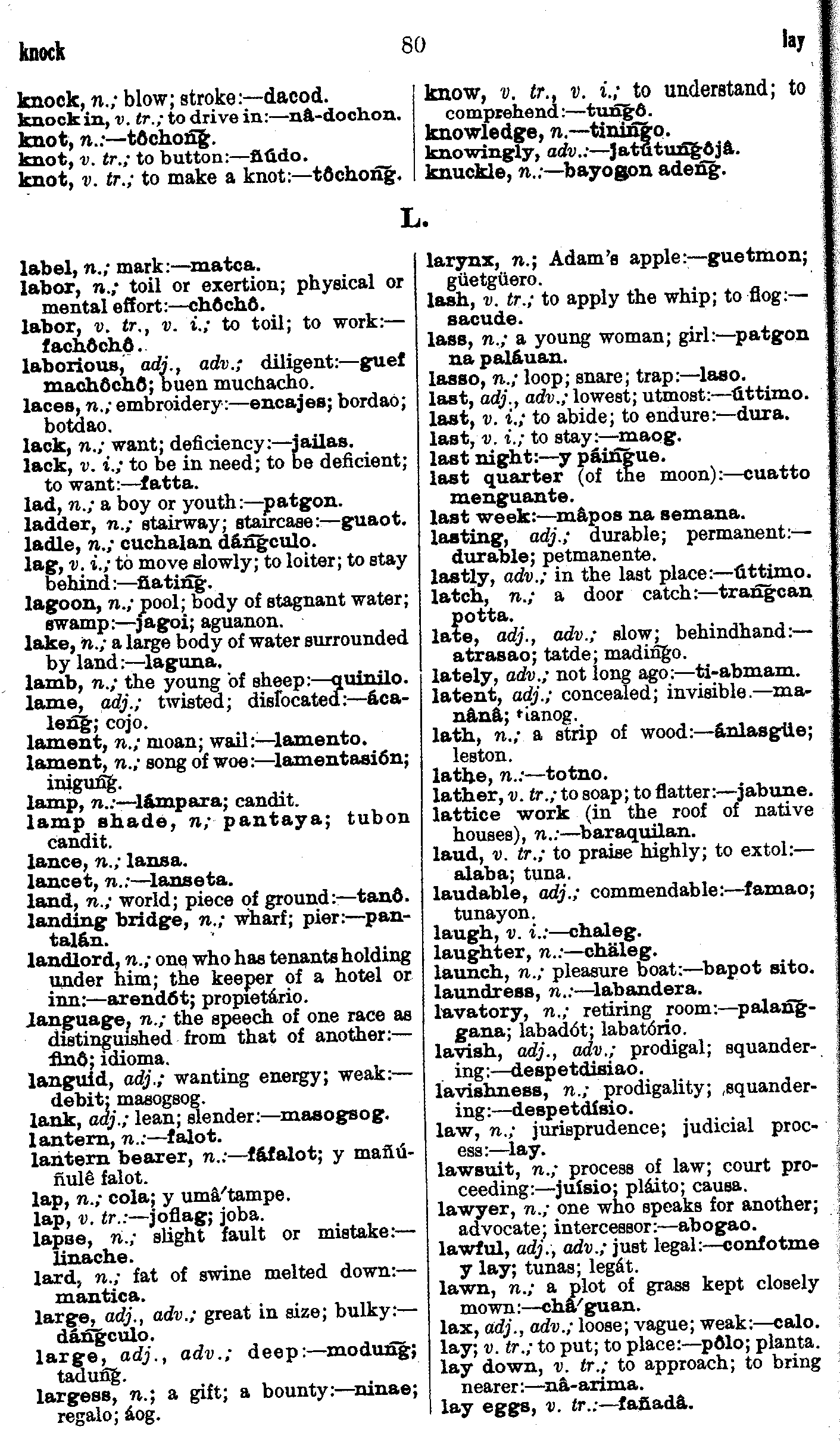 | knock - lay | . . . . . . . . . . . | 80 | 80 |